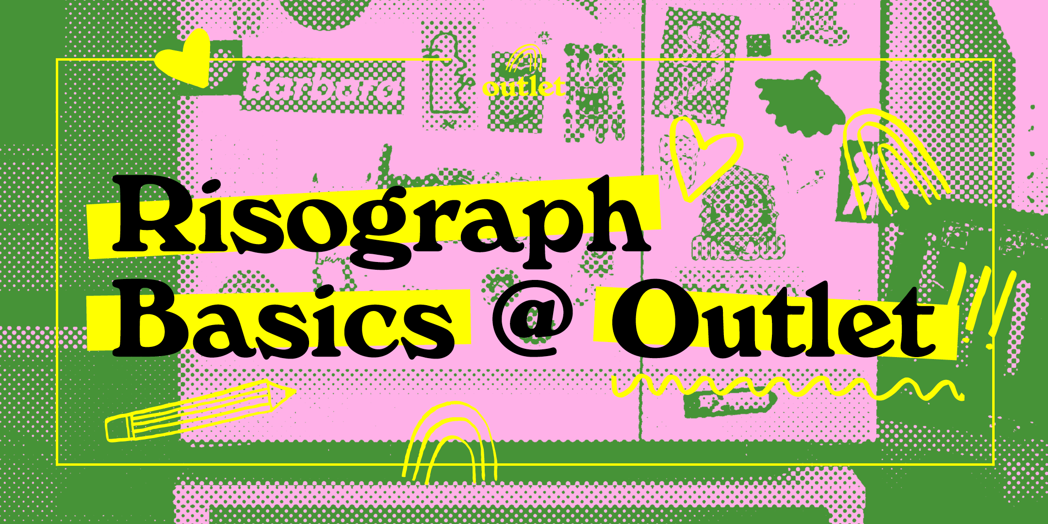 Welcome to our Risograph Basics course: a printing, collage, experimentation, and mark making extravaganza! Get to know Outlet and our RISO sisters (Barbara, Janet, Corita, and Tina) and learn the basics of this fun and unique print method!